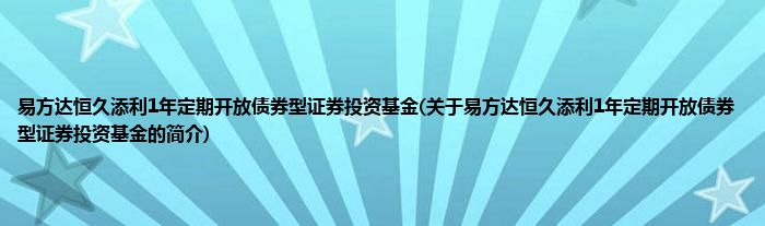大家好,易方达恒久添利1年定期开放债券型证券投资基金,关于易方达恒久添利1年定期开放债券型证券投资基金的简介很多人还不知道,现在让我们一起来看看吧!