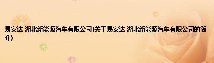 易安达湖北新能源汽车有限公司(关于易安达湖北新能源汽车有限公司的简介)