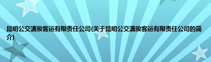 昆明公交滇骏客运有限责任公司(关于昆明公交滇骏客运有限责任公司的简介)
