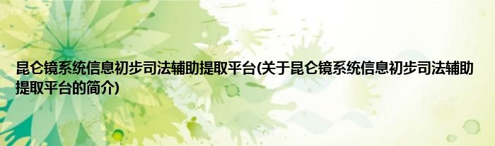 大家好,昆仑镜系统信息初步司法辅助提取平台,关于昆仑镜系统信息初步司法辅助提取平台的简介很多人还不知道,现在让我们一起来看看吧!