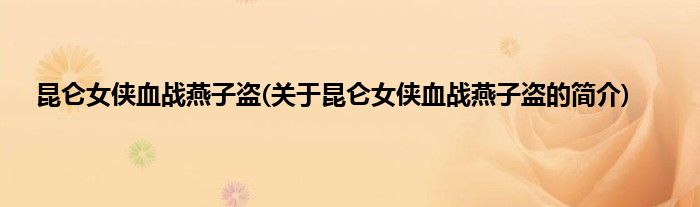 本文关于昆仑女侠血战燕子盗的简介就讲解完毕,希望对大家有所帮助。