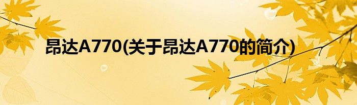 本文关于昂达A770的简介就讲解完毕,希望对大家有所帮助。