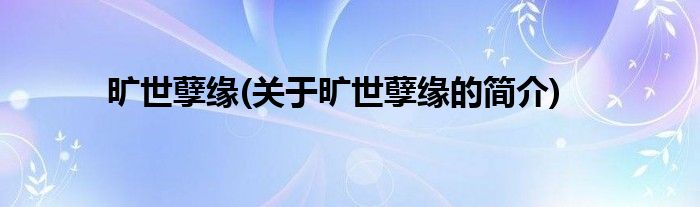 本文关于旷世孽缘的简介就讲解完毕,希望对大家有所帮助。