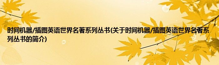 本文关于时间机器/插图英语世界名著系列丛书的简介就讲解完毕,希望对大家有所帮助。
