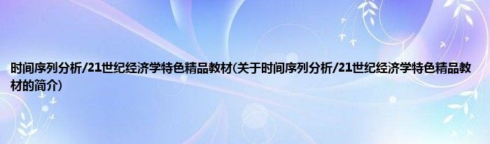 本文关于时间序列分析/21世纪经济学特色精品教材的简介就讲解完毕,希望对大家有所帮助。