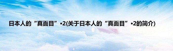 大家好,日本人的“真面目”·2,关于日本人的“真面目”·2的简介很多人还不知道,现在让我们一起来看看吧!
