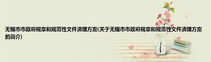 本文关于无锡市市政府规章和规范性文件清理方案的简介就讲解完毕,希望对大家有所帮助。