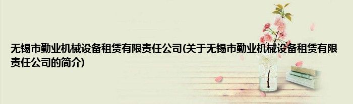 无锡市勤业机械设备租赁有限责任公司(关于无锡市勤业机械设备租赁有限责任公司的简介...