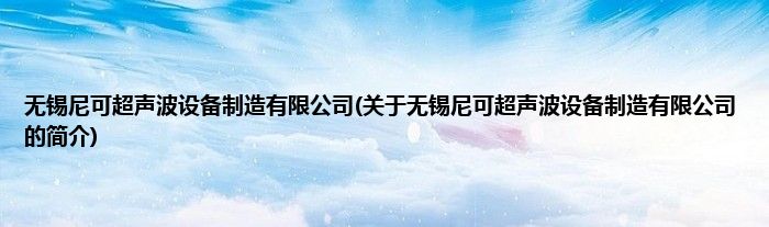 本文关于无锡尼可超声波设备制造有限公司的简介就讲解完毕,希望对大家有所帮助。