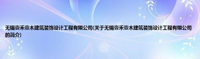 本文关于无锡壹禾壹木建筑装饰设计工程有限公司的简介就讲解完毕,希望对大家有所帮助。