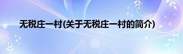 大家好,无税庄一村,关于无税庄一村的简介很多人还不知道,现在让我们一起来看看吧!
