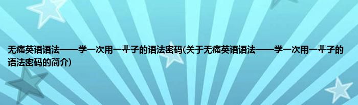 本文关于无痛英语语法——学一次用一辈子的语法密码的简介就讲解完毕,希望对大家有所帮助。