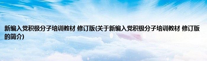 大家好,新编入党积极分子培训教材 修订版,关于新编入党积极分子培训教材 修订版的简介很多人还不知道,现在让我们一起来看看吧!