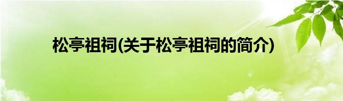 大家好,松亭祖祠,关于松亭祖祠的简介很多人还不知道,现在让我们一起来看看吧!