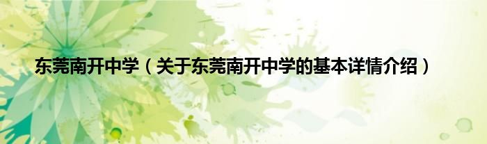 本文关于东莞南开中学的基本详情介绍就讲解完毕,希望对大家有所帮助。