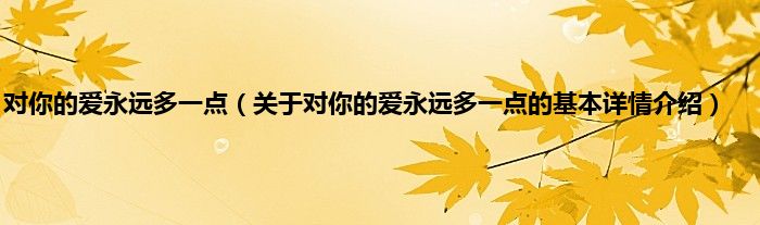 本文关于对你的爱永远多一点的基本详情介绍就讲解完毕,希望对大家有所帮助。