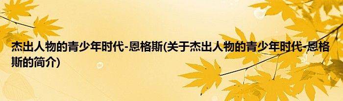 杰出人物的青少年时代-恩格斯(关于杰出人物的青少年时代-恩格斯的简介)