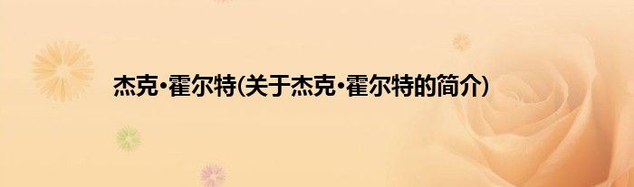 本文关于杰克·霍尔特的简介就讲解完毕,希望对大家有所帮助。