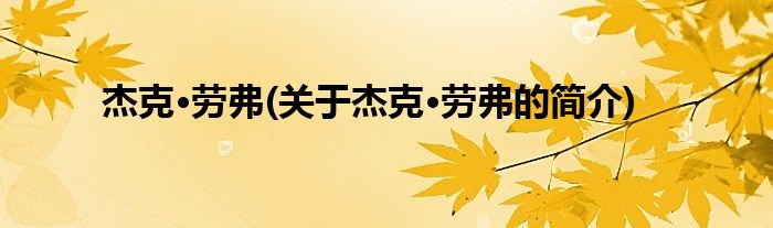大家好,杰克·劳弗,关于杰克·劳弗的简介很多人还不知道,现在让我们一起来看看吧!
