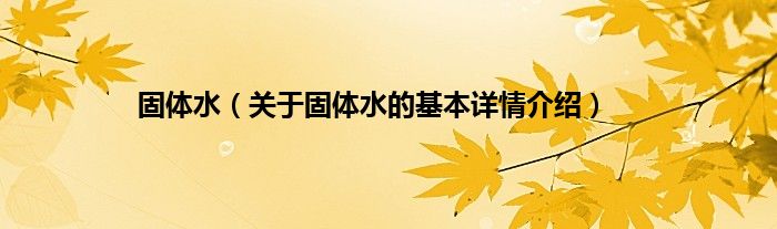 本文关于固体水的基本详情介绍就讲解完毕,希望对大家有所帮助。