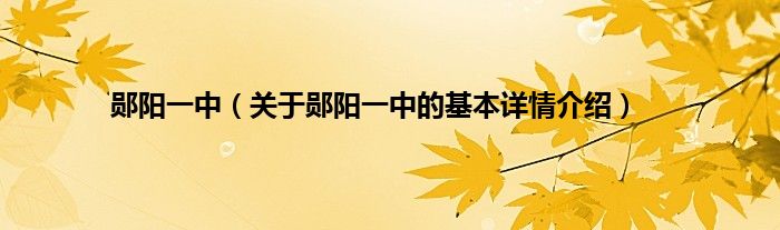 大家好我是小蝌蚪,郧阳一中,关于郧阳一中的基本详情介绍很多人还不知道,那么现在让我们一起来看看吧!