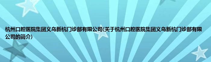 本文关于杭州口腔医院集团义乌新杭门诊部有限公司的简介就讲解完毕,希望对大家有所帮助。
