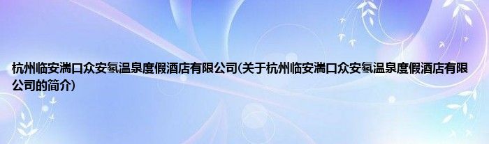 杭州临安湍口众安氡温泉度假酒店有限公司(关于杭州临安湍口众安氡温泉度假酒店有限公司的简介)