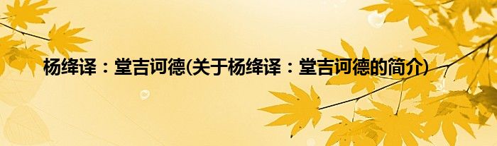 大家好,杨绛译:堂吉诃德,关于杨绛译:堂吉诃德的简介很多人还不知道,现在让我们一起来看看吧!