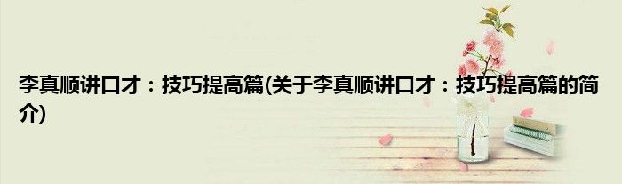 大家好,李真顺讲口才:技巧提高篇,关于李真顺讲口才:技巧提高篇的简介很多人还不知道,现在让我们一起来看看吧!