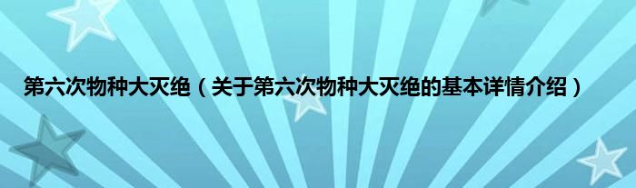 本文关于第六次物种大灭绝的基本详情介绍就讲解完毕,希望对大家有所帮助。