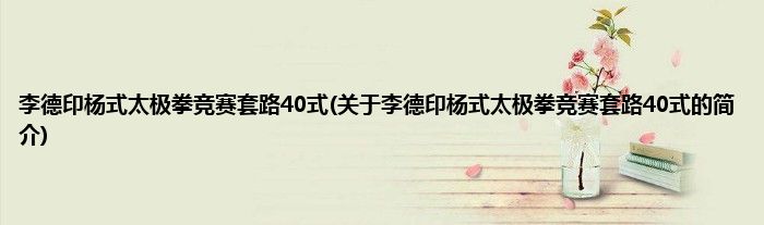 本文关于李德印杨式太极拳竞赛套路40式的简介就讲解完毕,希望对大家有所帮助。