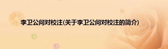 大家好,李卫公问对校注,关于李卫公问对校注的简介很多人还不知道,现在让我们一起来看看吧!