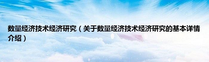 数量经济技术经济研究(关于数量经济技术经济研究的基本详情介绍)