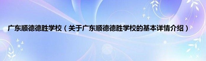 广东顺德德胜学校(关于广东顺德德胜学校的基本详情介绍)