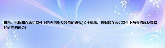 大家好,机采、机掘和在恶劣条件下防突措施及装备的研究,关于机采、机掘和在恶劣条件下防突措施及装备的研究的简介很多人还不知道,现在让我们一起来看看吧!