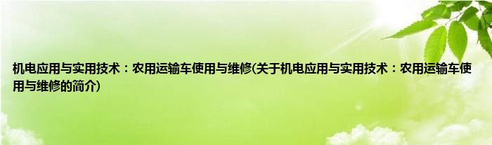 本文关于机电应用与实用技术:农用运输车使用与维修的简介就讲解完毕,希望对大家有所帮助。