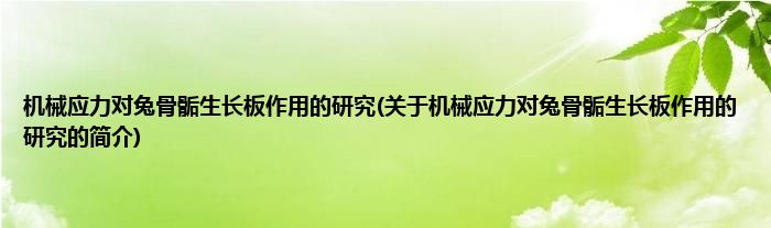 大家好,机械应力对兔骨骺生长板作用的研究,关于机械应力对兔骨骺生长板作用的研究的简介很多人还不知道,现在让我们一起来看看吧!