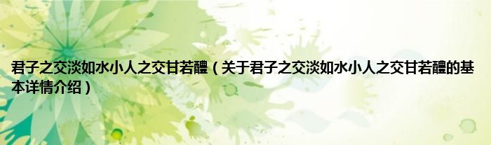 本文关于君子之交淡如水小人之交甘若醴的基本详情介绍就讲解完毕,希望对大家有所帮助。