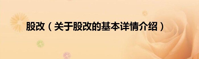 本文关于股改的基本详情介绍就讲解完毕,希望对大家有所帮助。