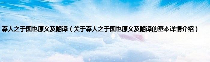本文关于寡人之于国也原文及翻译的基本详情介绍就讲解完毕,希望对大家有所帮助。