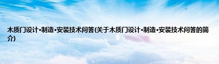木质门设计·制造·安装技术问答(关于木质门设计·制造·安装技术问答的简介)