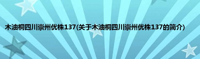 本文关于木油桐四川崇州优株137的简介就讲解完毕,希望对大家有所帮助。