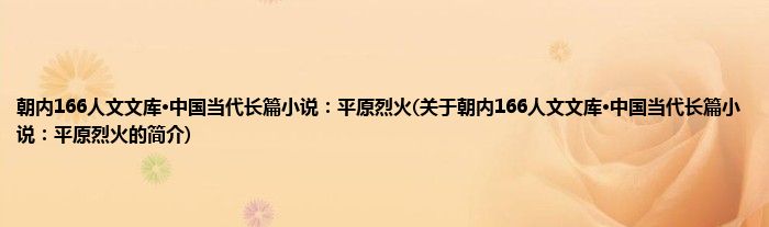 大家好,朝内166人文文库·中国当代长篇小说:平原烈火,关于朝内166人文文库·中国当代长篇小说:平原烈火的简介很多人还不知道,现在让我们一起来看看吧!