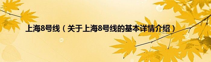 本文关于上海8号线的基本详情介绍就讲解完毕,希望对大家有所帮助。