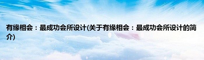 大家好,有缘相会:最成功会所设计,关于有缘相会:最成功会所设计的简介很多人还不知道,现在让我们一起来看看吧!