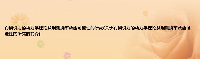 本文关于有挠引力的动力学理论及观测挠率效应可能性的研究的简介就讲解完毕,希望对大家有所帮助。