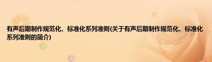 有声后期制作规范化、标准化系列准则(关于有声后期制作规范化、标准化系列准则的简介)