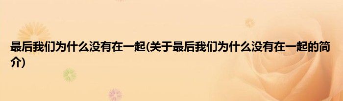 大家好,最后我们为什么没有在一起,关于最后我们为什么没有在一起的简介很多人还不知道,现在让我们一起来看看吧!