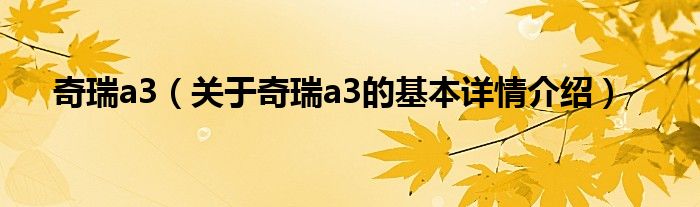 本文关于奇瑞a3的基本详情介绍就讲解完毕,希望对大家有所帮助。