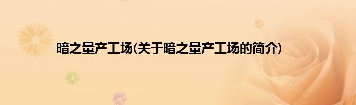 大家好,暗之量产工场,关于暗之量产工场的简介很多人还不知道,现在让我们一起来看看吧!